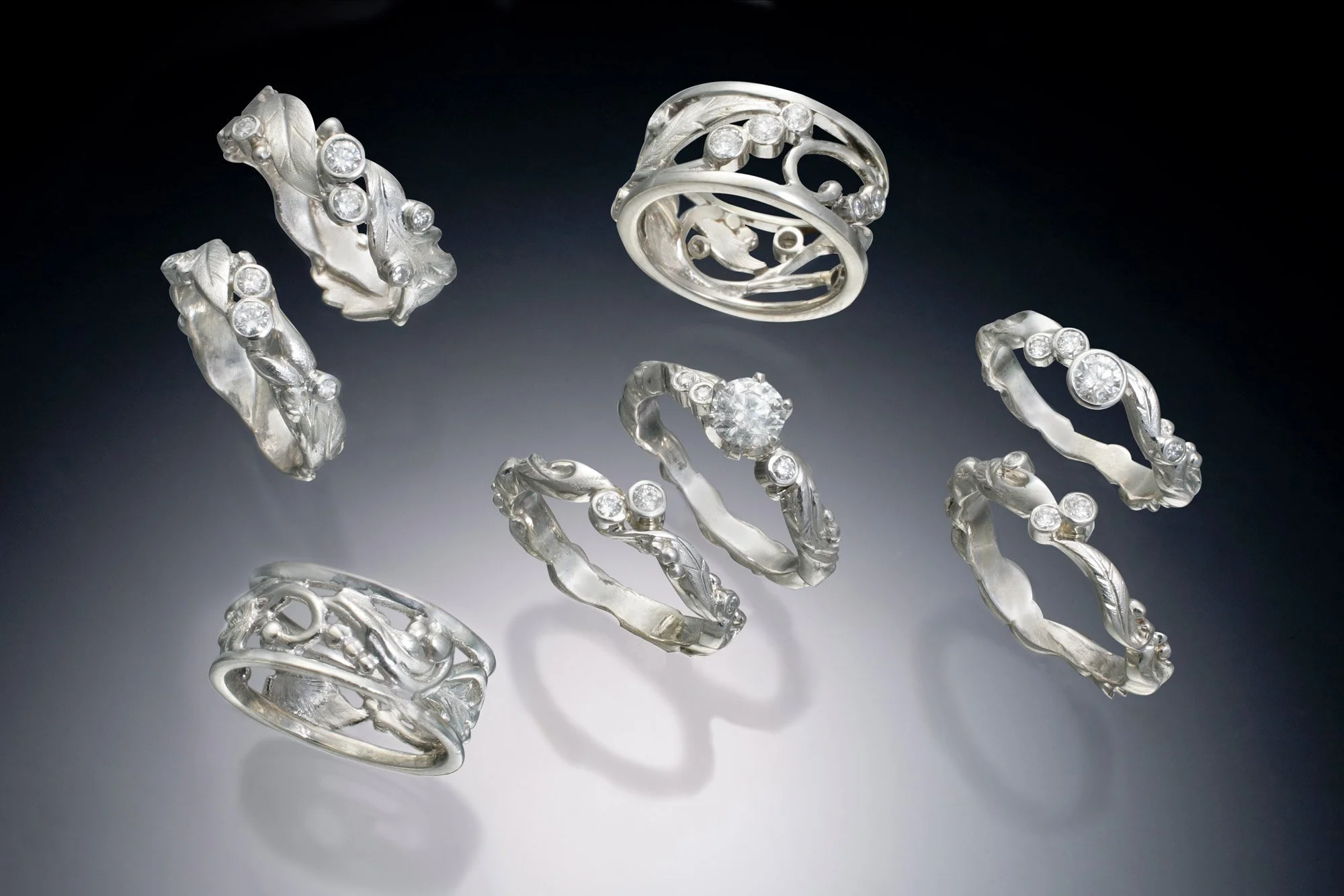I am inspired by the natural beauty in nature. The inspiration for my hand-engraved Meadow Grass Collection came to me late one night, walking past a meadow lit with hundreds of fireflies flashing in the darkness like diamonds.